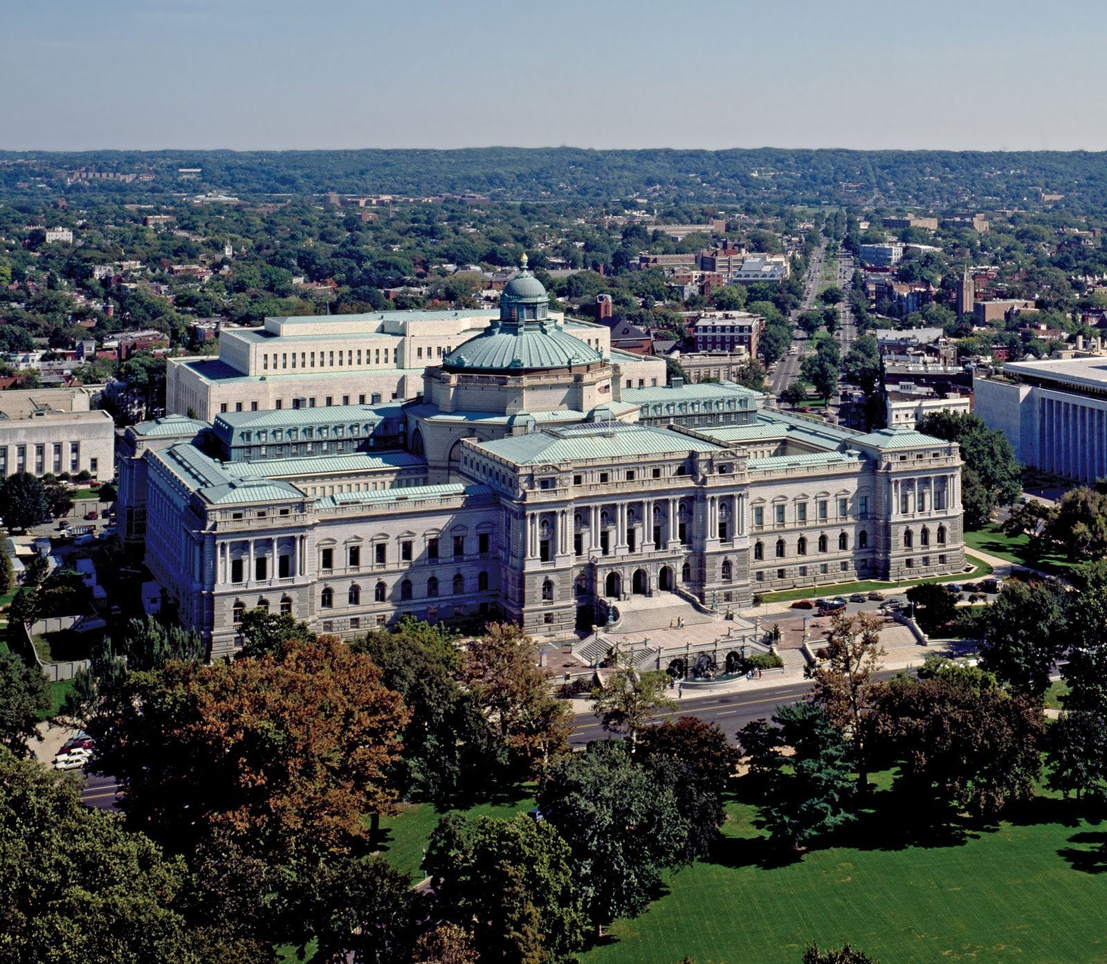 (Thomas Jefferson Building, with John Adams Building behind and corner of the James Madison Building to the right. Image from Britannica.)