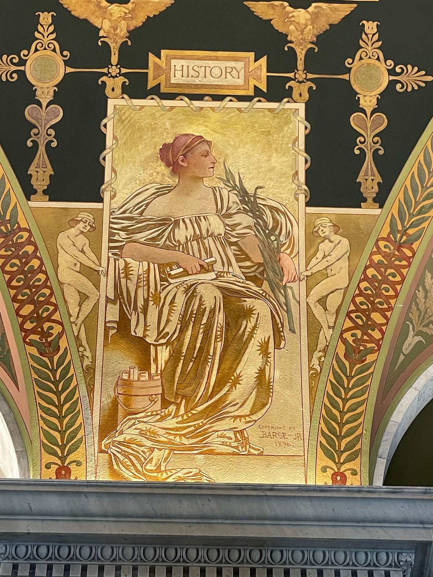(My muse while researching at the Library this summer, a mural from the Great Hall; photo by author.)