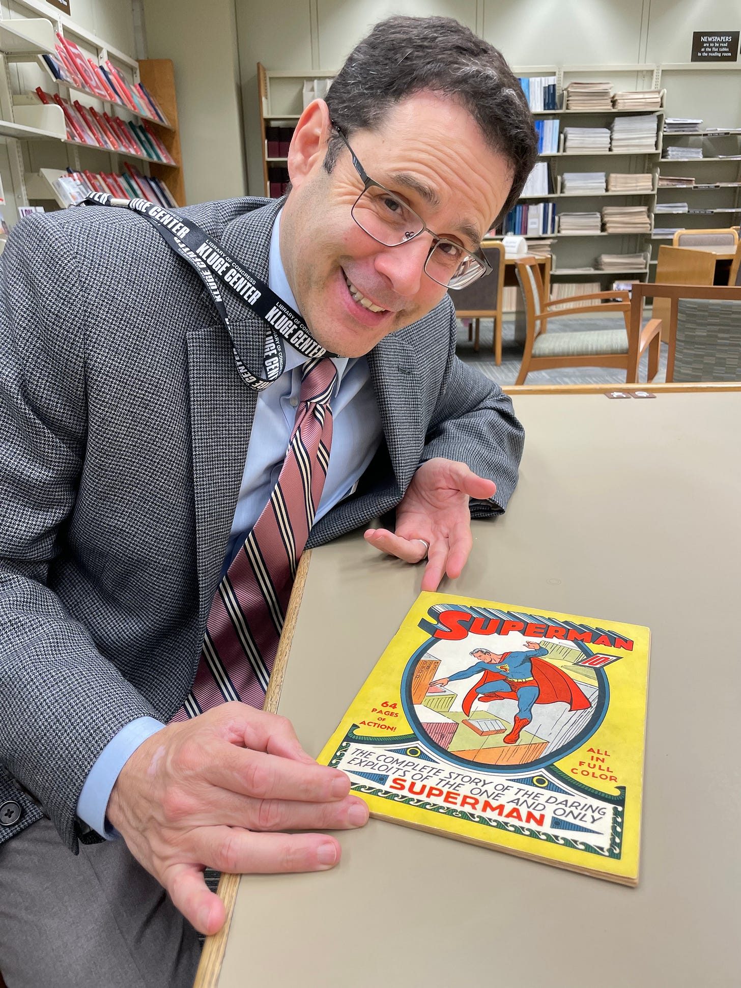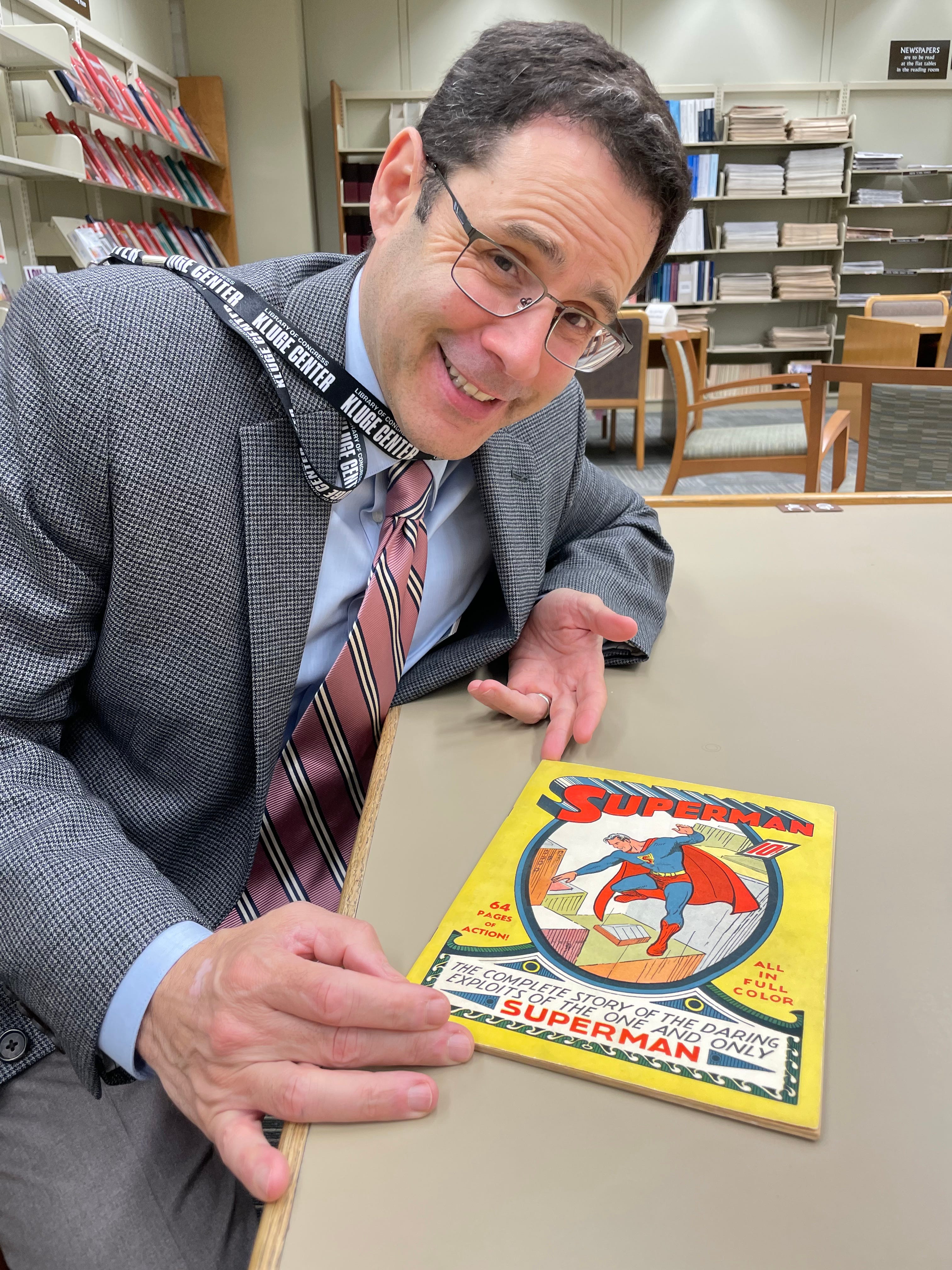 Yes, that’s an actual Superman No. 1. Some of you may have read that just last month, the same issue sold for $9 million at auction, and this copy was probably not that far in quality from that record-breaker. And, Megan pulled out Batman No. 1, Amazing Fantasy No. 15, and others from the Library’s collection of 165,000 comics (after I came to, I told Megan that I would love to help the Library get copies of Action Comics No. 1 and Detective Comics No. 27, so if any readers just happen to have those and would like to donate them to the Nation, please get in touch).